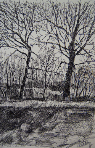 Günztallandschaft, 2008, Feder, 24x17 cm